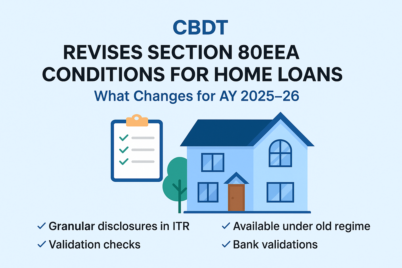 The Central Board of Direct Taxes (CBDT) has revised the compliance and reporting conditions for claiming deductions under Section 80EEA of the Income Tax Act. While the legal sanction window for this deduction has not been extended, the ITR filing process for AY 2025–26 has become more detailed and validation-driven.