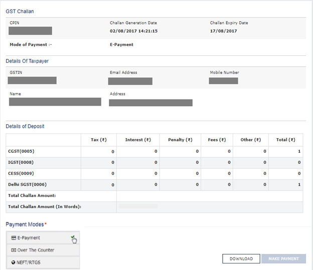 Net-Banking or take a printout of the challan and make payment in Bank.