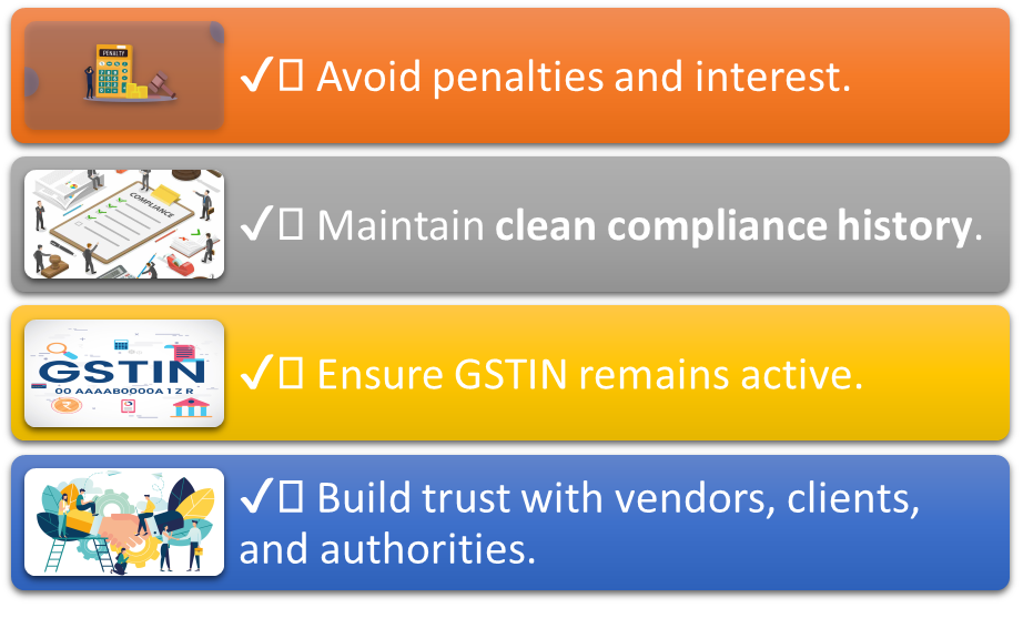 Always file NIL returns on or before the due date (20th of the following month for GSTR-3B).