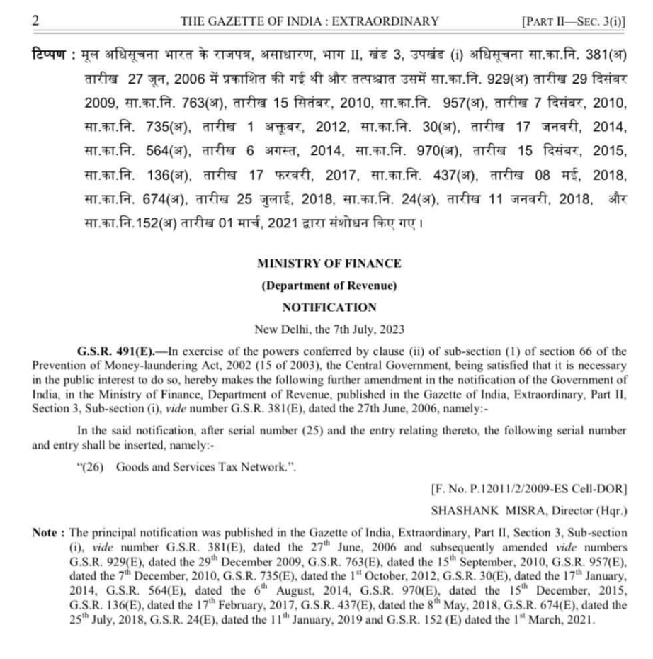 The notification is regarding sharing of information between ED and GSTN under section 66(1)(iii) of PMLA. The Central Board of Indirect Taxes and Customs (CBIC) has been bullish on preventing tax evasion.CBIC chairman Vivek Johri had said last month that the government is serious towards curbing the practice of fake billing and fake invoicing and also identifying fake businesses.PMLA was enacted to tackle terror funding and drug trafficking. The notification will now facilitate sharing of information or material in possession between ED and GSTN, to check any violations of GST provisions.