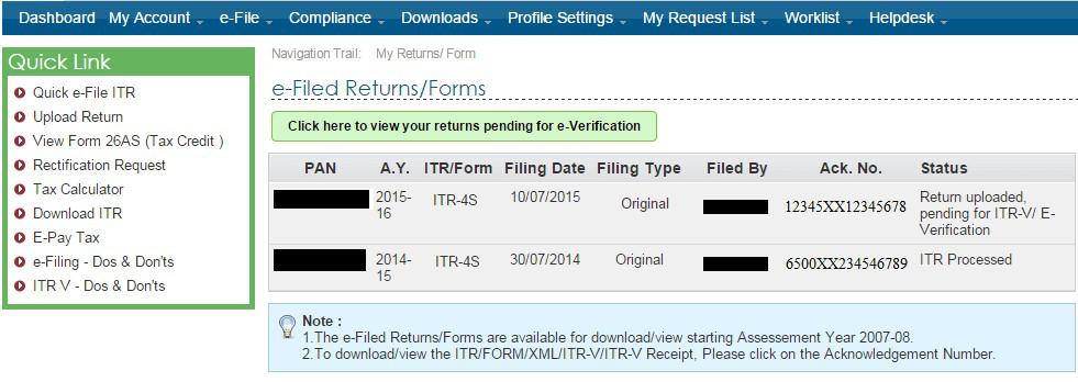 Step 3: Select the option ‘Click here to view your returns pending for e-verification’