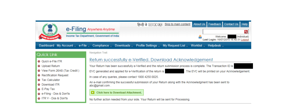 After having successfully filed your income tax return, the next step is to verify it. The Income Tax Department starts processing your return, once it is verified. Refunds, if any, are processed for returns that have been submitted and verified.