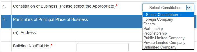 Foreign company/Partnership firm/ proprietorship/ Private limited company/ public limited company/Unlimited company/ others (If HUF, AOP, BOI and so on)