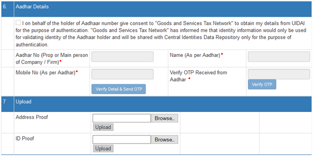 6. Aadhar details and verification for authentication of the application* :