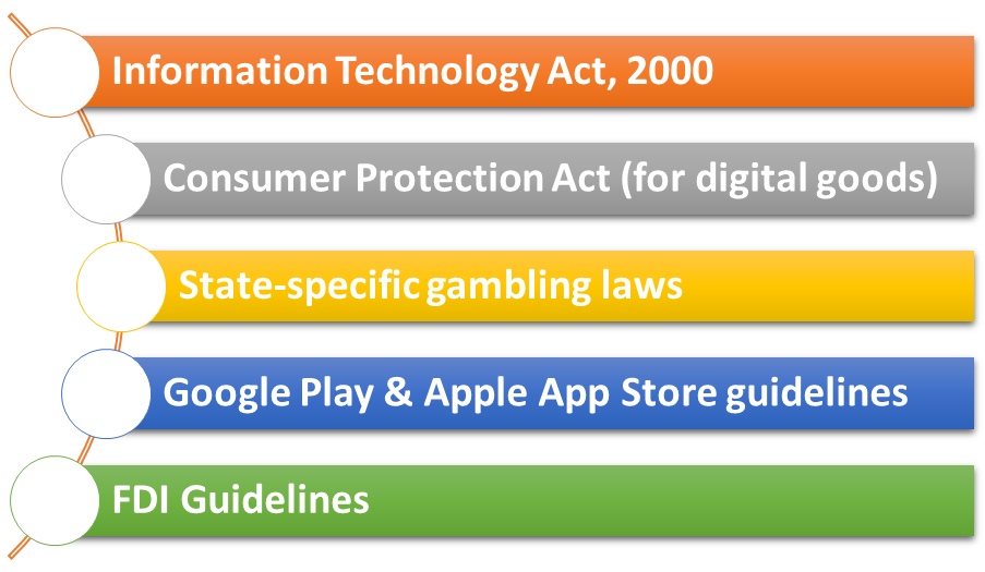 India does not have a single unified gaming law. However, mobile game studios must adhere to multiple legal frameworks: