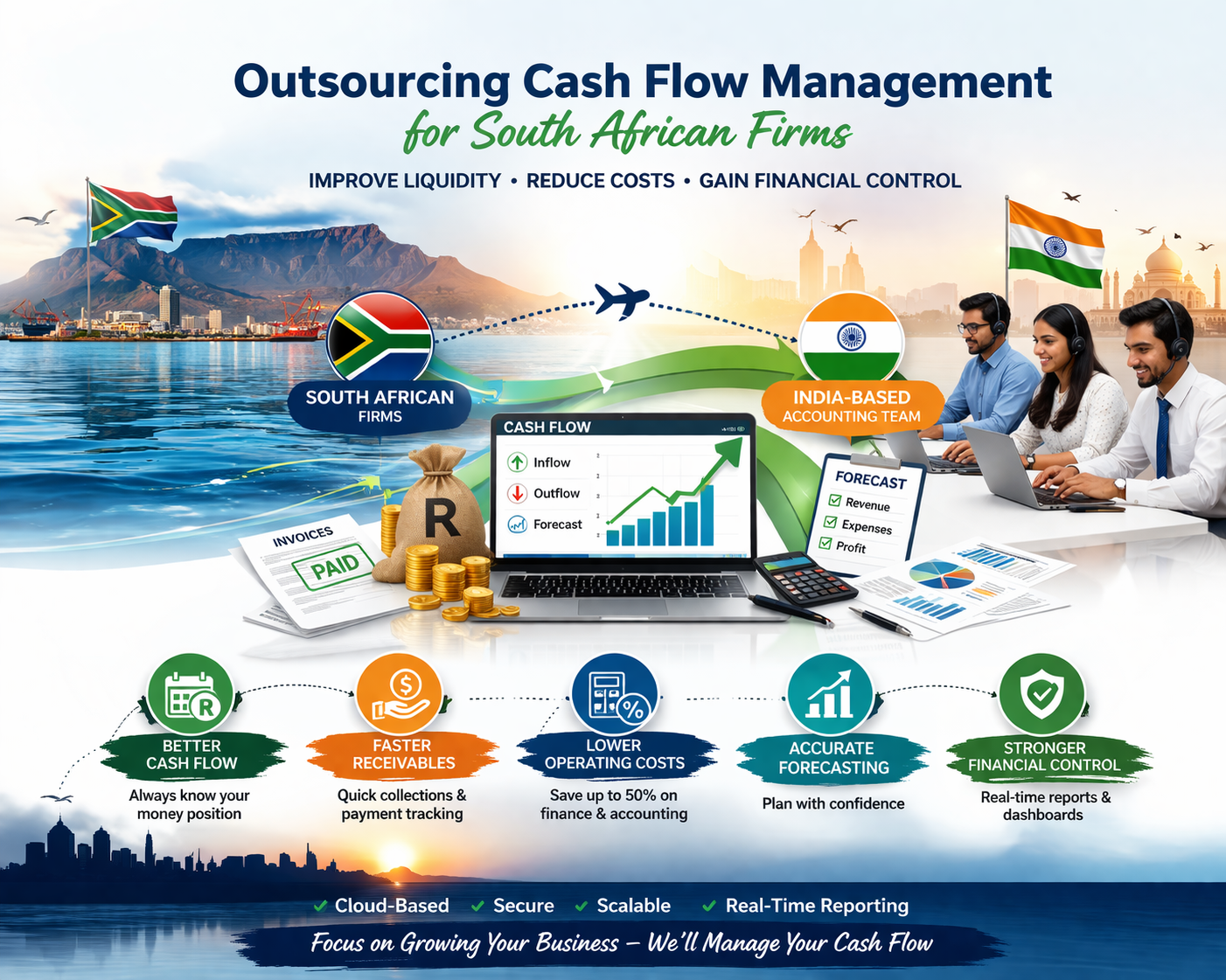 Outsourcing cash flow management for South African firms is a strategic approach to maintaining financial stability and improving operational efficiency. With the support of India-based accounting teams, businesses can gain better control over cash flow, reduce risks, and plan for sustainable growth.