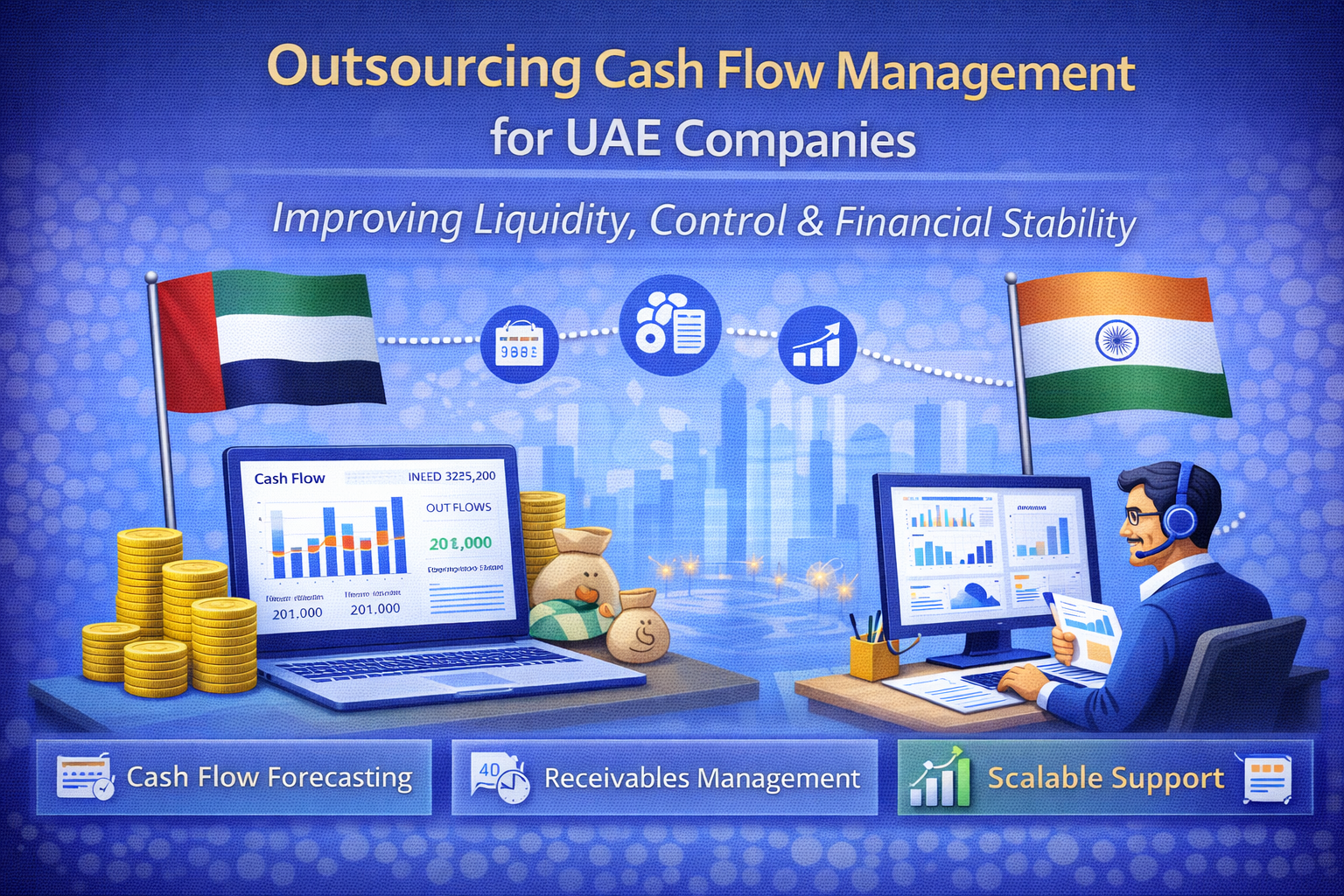 However, many UAE companies—especially SMEs and growing enterprises—struggle with irregular cash flows, delayed payments, and lack of structured financial planning. To overcome these challenges, businesses are increasingly adopting outsourcing cash flow management for UAE companies, leveraging India-based accounting teams for real-time insights and structured financial control.